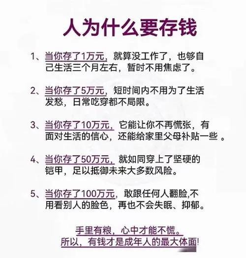 别再盲目消费了!掌握储蓄技巧,铸就人生的坚实后盾,在当今这个物价持续上涨、生活成本日益增加的时代,许多人常常感到资金紧张,仿佛工资永远无法满足日益增长的消费需求。